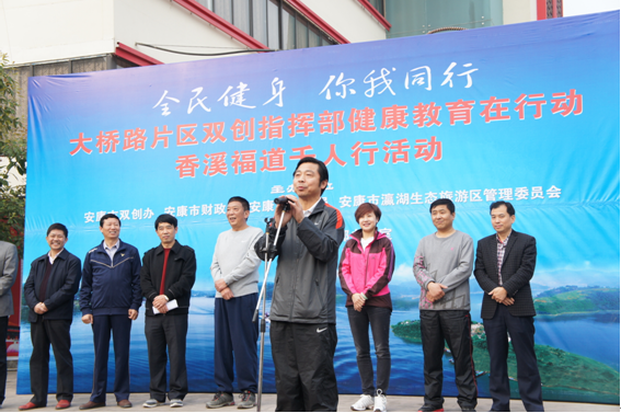 阳春三月,春光明媚,安康城区各处花红柳绿、景色怡人。为了营造关爱身心、崇尚健康、追求文明生活方式的良好氛围,引导和带动广大群众为共同建设美好安康。3月29日上午9时,由大桥路双创指挥部发起的“全民健身你我同行”健康教育户外活动拉开帷幕,市政府常务副市长王安利亲临现场,市财政局党组书记、局长何邦军带领局领导班子成员和全体干部职工,以及片区所辖40余个单位共1000余人参加了本次徒步登香溪洞活动,起点设在市财政局机关大院,途经头天门、香溪洞停车场、南天门玉皇殿,终点为万福鼎停车场。