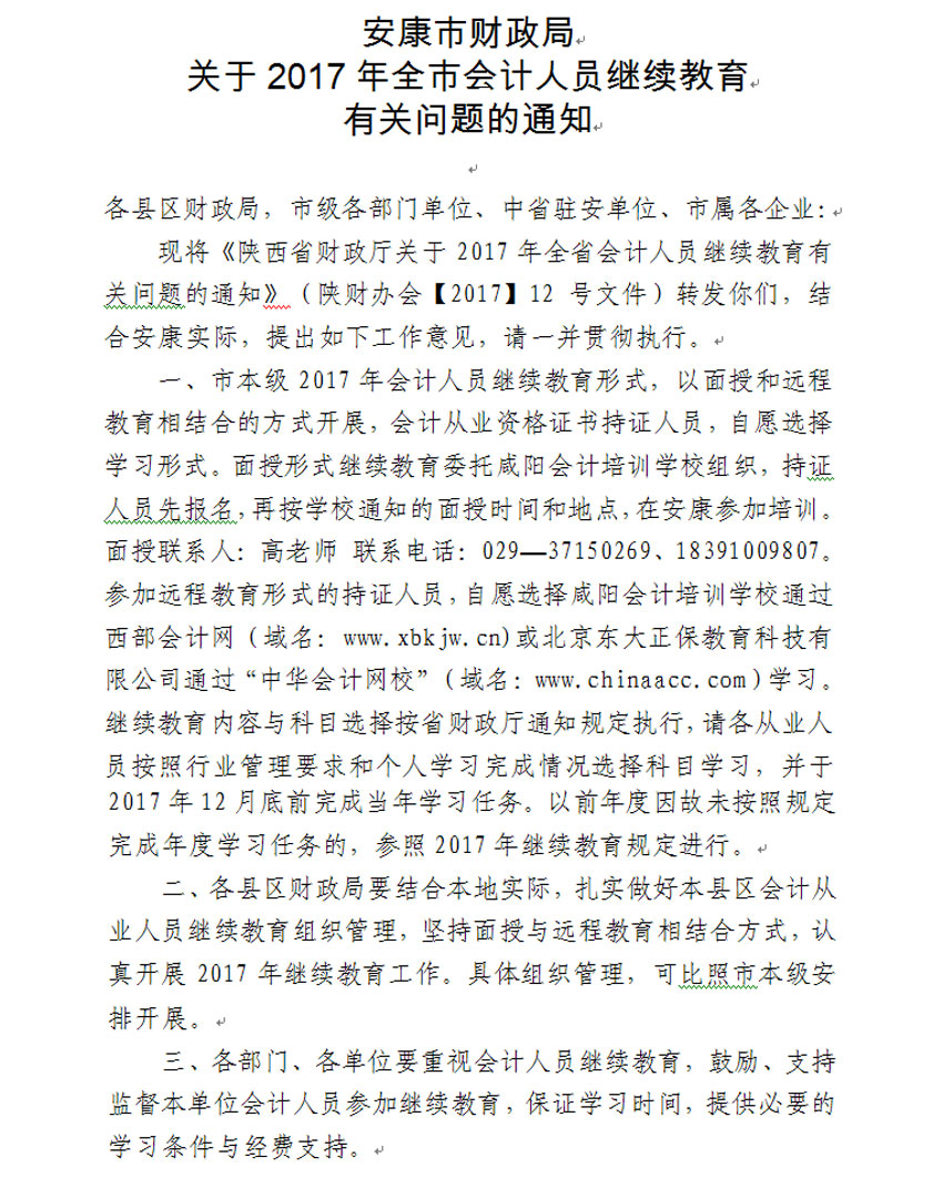 附件:陕西省财政厅关于2017年全省会计人员继续教育有关问题的通知(陕财办会【2017】12号文件)
